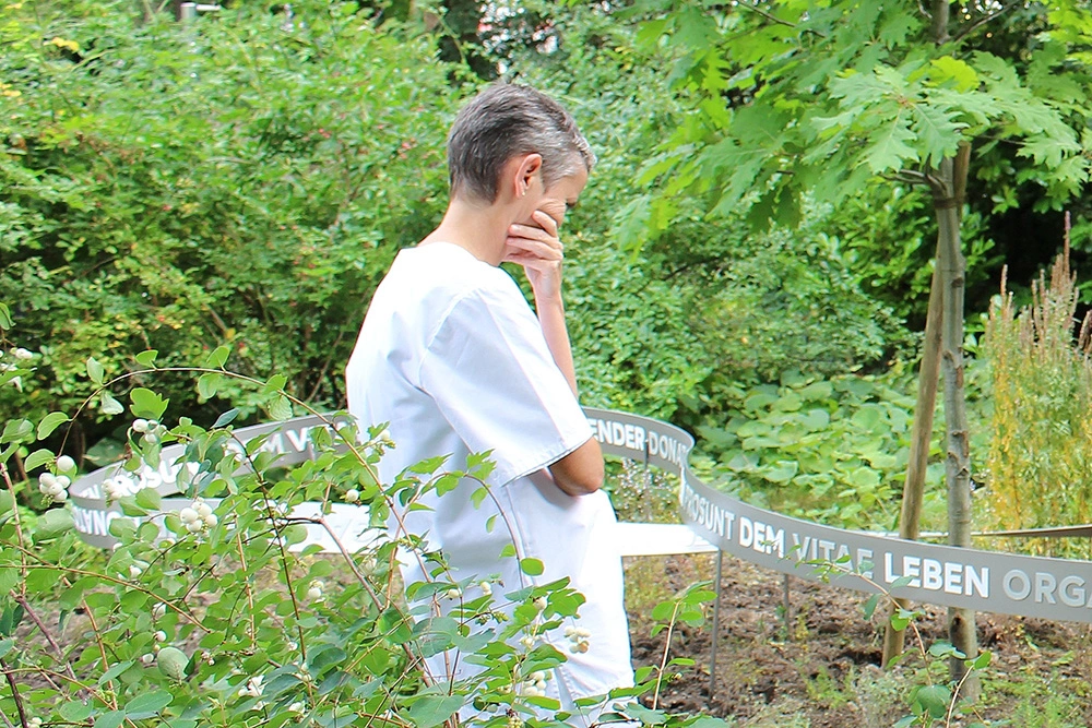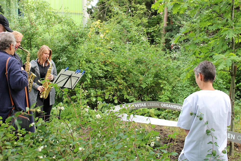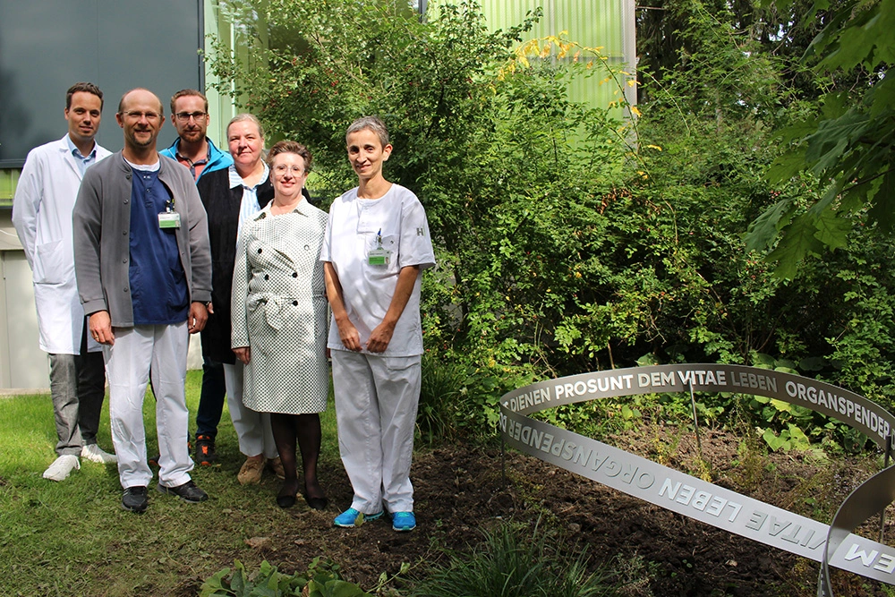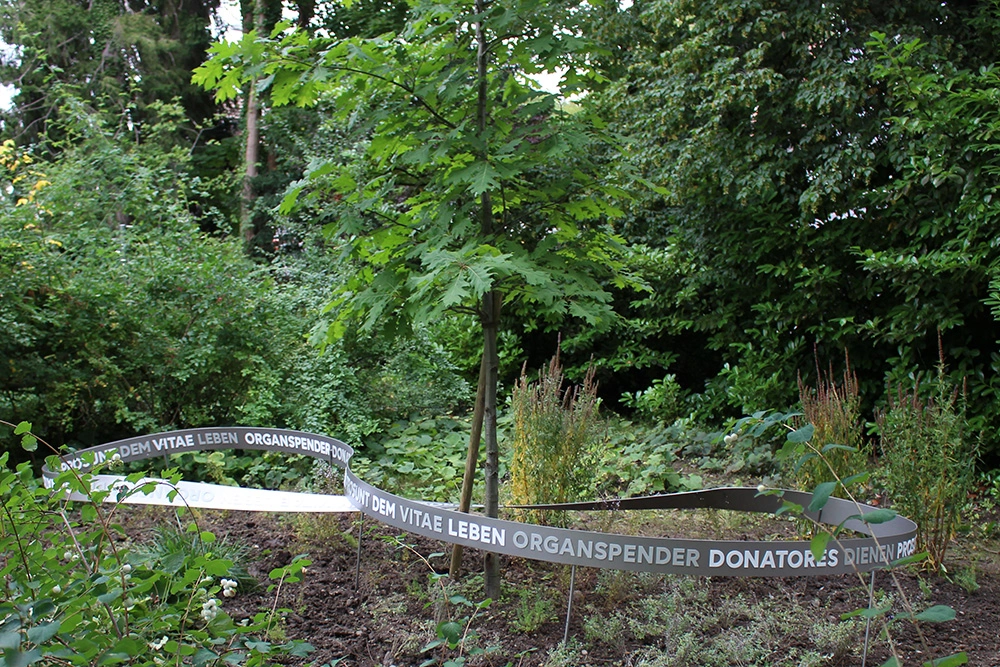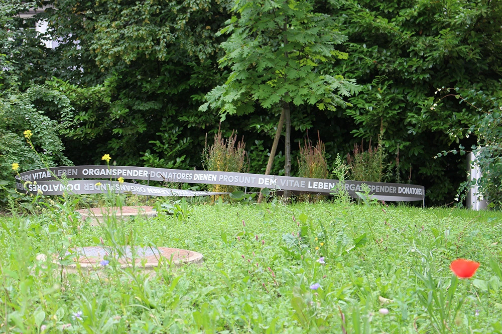 Zwischen den Häusern 19 und 20 wurde für die Angehörigen von Organspendern ein Ort geschaffen, der während der Organspende als Rückzugsort oder nach der Organspende als Ort der Erinnerung und Andacht genutzt werden kann.