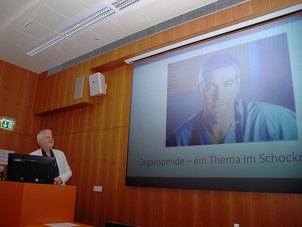 Über diese und viele weitere Themen referierten Dr. med. Susann Endermann, Leitende Ärztin der Chirurgischen Intensivstation, Wolfgang Ender, Organspende- und Transplantationskoordinator sowie Dr. med. Isabelle Binet, Leiterin der Klinik für Nephrologie und Transplantationsmedizin. Sie vermittelten dem zahlreichen Publikum einen vertieften Einblick in die Thematik und hinter die Kulissen der Organspende und der Transplantationsmedizin.