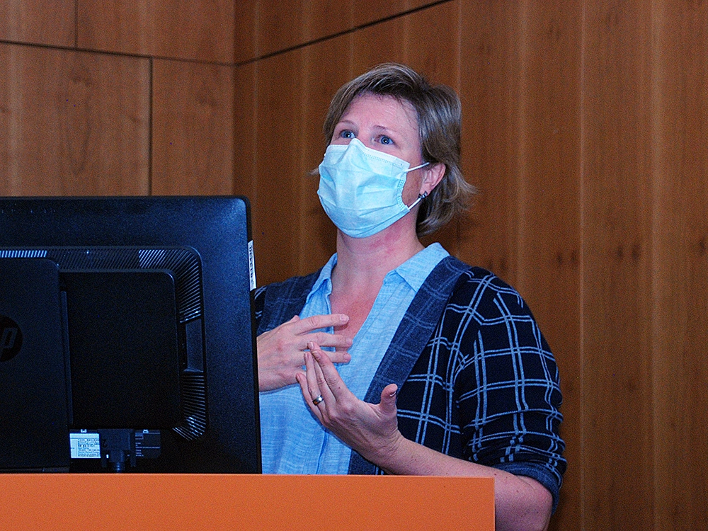 Isabelle Binet schloss mit ihrem Referat zum 10 jährigen Bestehen der Swiss Transplant Cohort Study die Jubiläumsfeier und lud alle Anwesenden zu einem Stehlunch ein.