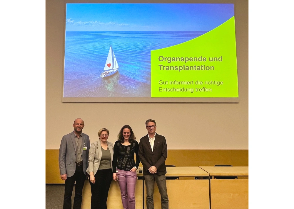 Über diese und viele weitere Themen referierten Yvonne Hilpertshauser, Oberärztin mbF der Medizinischen Intensivstation und Netzwerkleiterin NOO, Christine Sturm Oberärztin mbF an der Klinik für operative Intensivmedizin, Wolfgang Ender, Organspende- und Transplantationskoordinator sowie Christian Bucher, Leiter ad interim der Klinik für Nephrologie und Transplantationsmedizin. Sie vermittelten einen vertieften Einblick in die Thematik und hinter die Kulissen der Organspende und der Transplantationsmedizin.